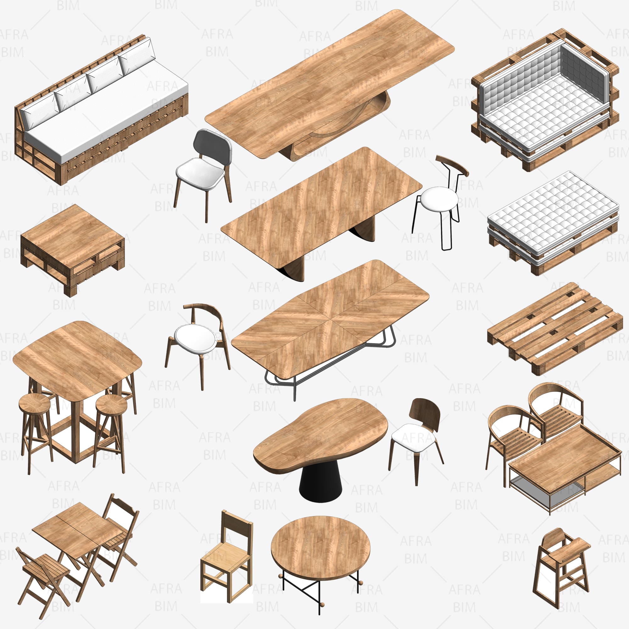 پک ویژه فمیلی مبلمان و ست ناهارخوری رویت | AfraBIM: کتابخانهای سبک و دقیق از میزهای گرد/مستطیلی، صندلیهای مدرن و کلاسیک، مبلمان L و ست کامل پذیرایی. مناسب رندر و مستندسازی BIM؛ شامل مدلهای پارامتریک منتخب.